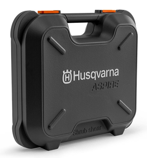 Kutija za jednostavno skladištenje i transport vaših Aspire™ škara za grmlje. Kutija sadrži prostor za ručnu jedinicu, nastavak škare za živicu i nastavak škare za travu, kotačiće te prostor za bateriju i punjač.