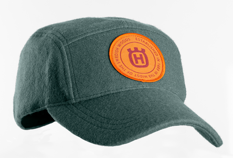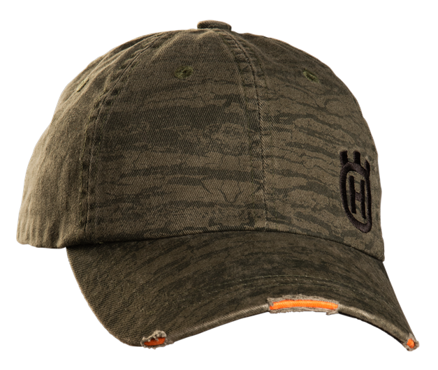 Tamnozelena kamuflažna šilterica starinskog izgleda s podesivim kožnim remenom. S prednje strane nalazi se ušiveni Husqvarna logo crne boje dok je prednji rub šilterice jarko narančaste boje. Jednostavno podesite remen straga i kapa će savršeno pristajati na vašoj glavi.