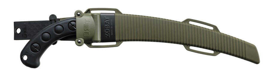 Zübat Ultimate dolazi s jedinstvenom futrolom maslinaste boje i elegantnom crnom metalnom pločom koja mu daje robustan i moderan izgled. Cijela oštrica duga 330 mm pažljivo je presvučena Silky-jevom elektroničkom niklom, čime se osigurava izuzetna otpornost na hrđu i pridonosi njenom robusnom izgledu.